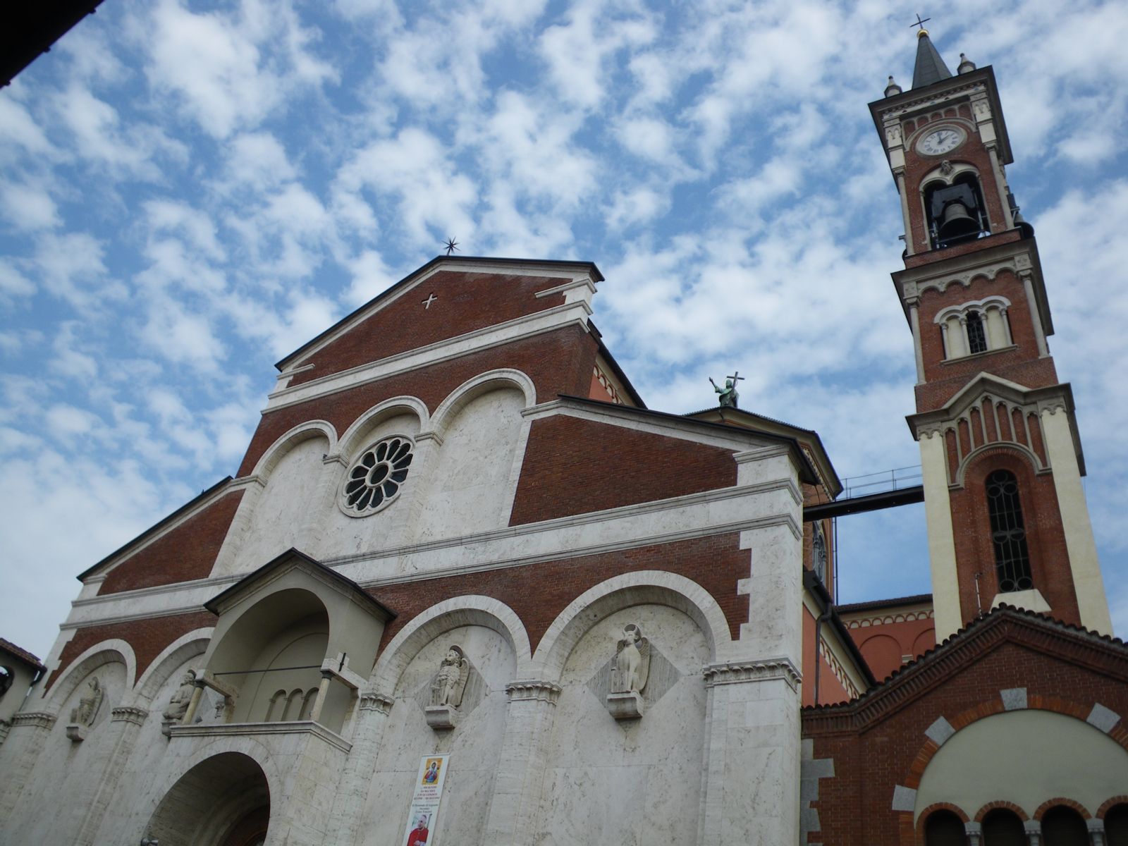 La costruzione della chiesa parrocchiale, progettata dall'architetto don Enrico Locatelli, inizia nel 1900 e viene consacrata al "Crocifisso e a San Domenico" nel 1908. Negli anni ’30 la facciata originale in laterizio viene rifatta in stile neogotico con una grande elaborazione delle parti sommitali su progetto dell’architetto P.G.Magistretti E' situata nel centro della città, in Corso Garibaldi 92 e comprende il territorio delle contrade San Domenico e San Martino